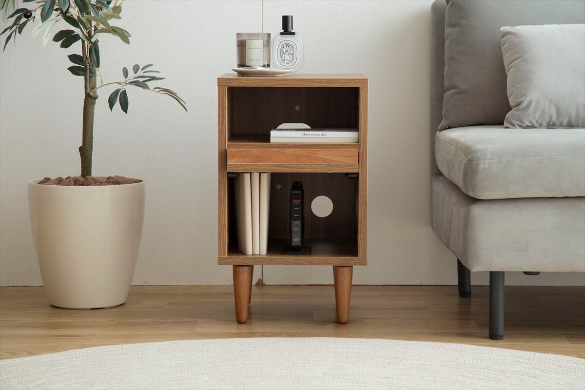 フラップ扉で生活感を隠して、おしゃれに魅せる『Tony(トニー)』のサイドキャビネット
