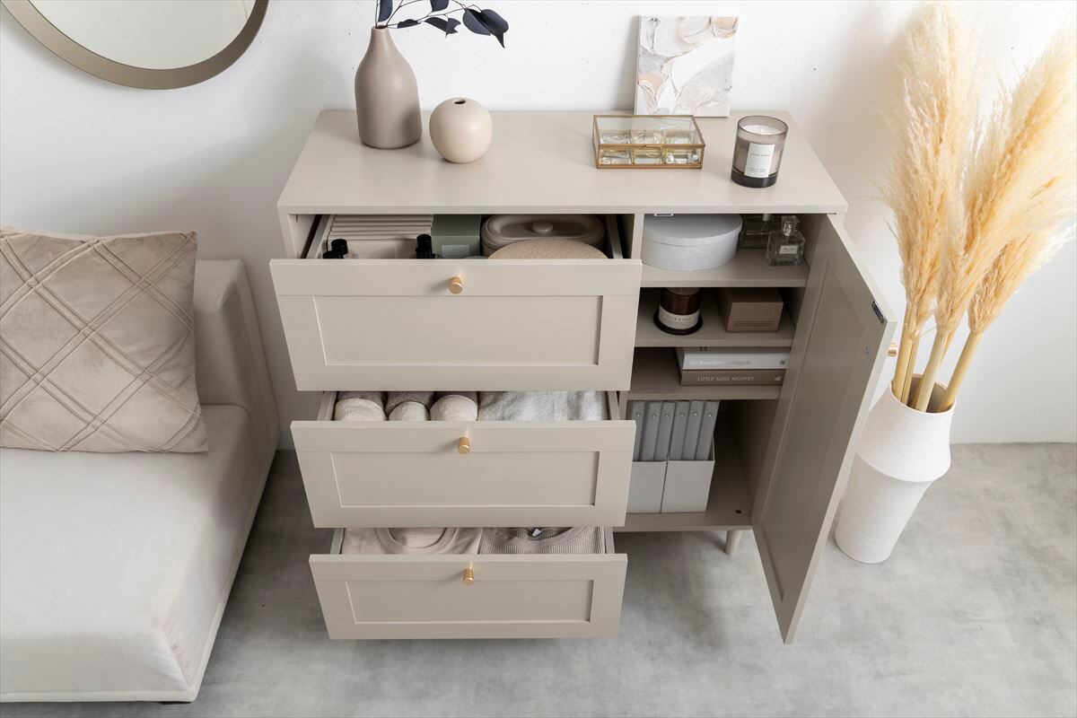 品のあるデザインと柔らかなニュアンスカラーが印象的な『Calan(カラン)』シリーズのキャビネット