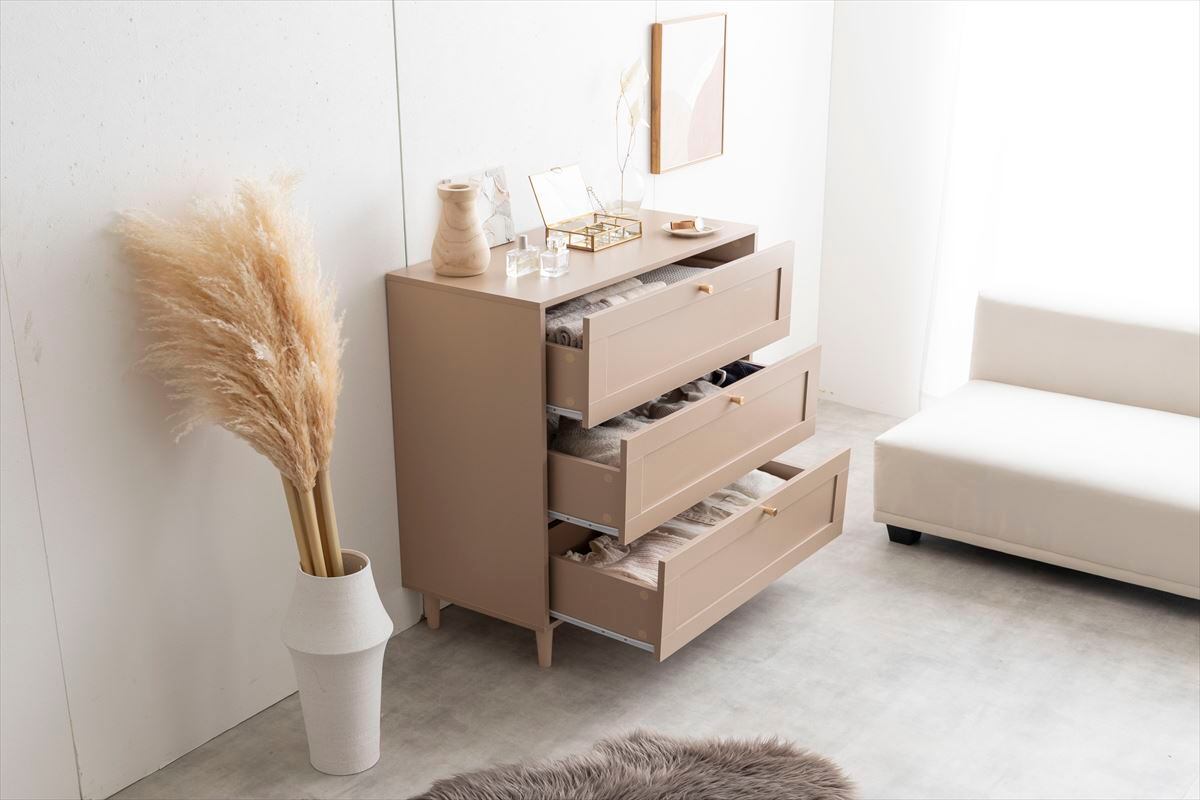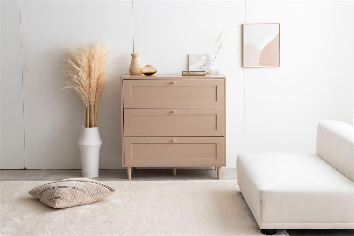 品のある框(かまち)デザインと柔らかなニュアンスカラーが印象的な『Calan(カラン)』シリーズのチェスト