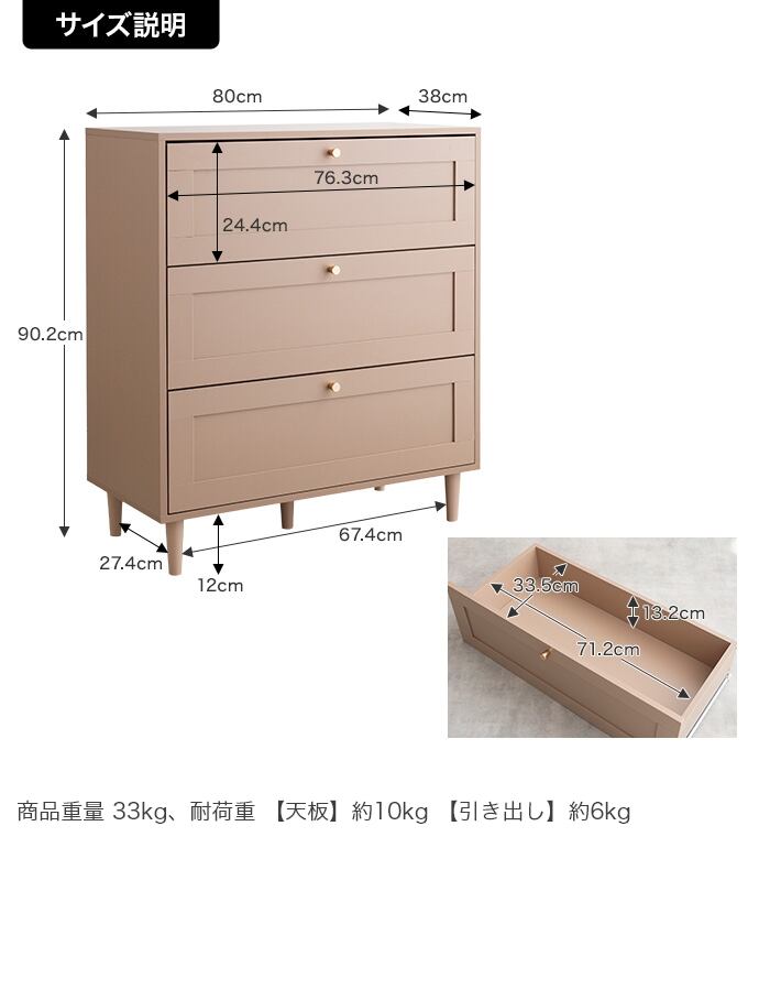 【耐荷重】天板:約10kg、引き出し:約6kg