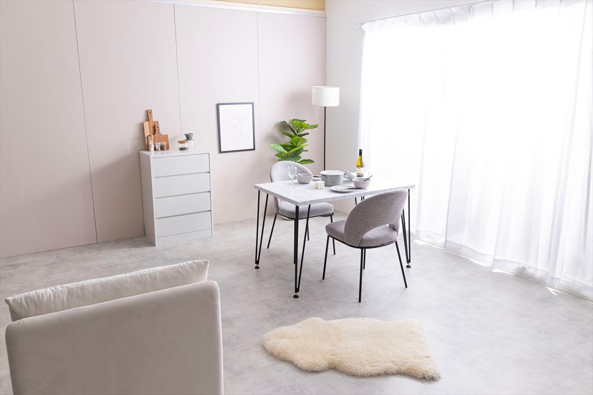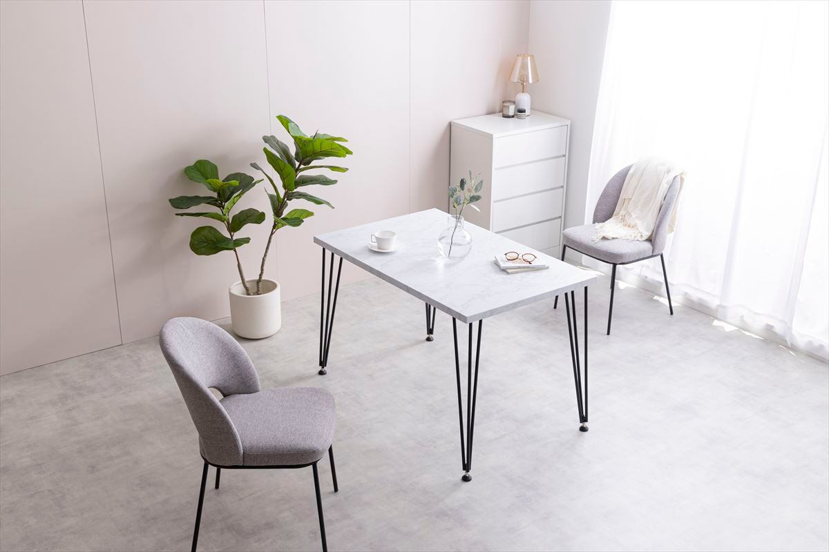 美しい大理石調の天板×ブラックスチール脚のデザインが特徴的な『Melia(メリア)』ダイニングテーブル