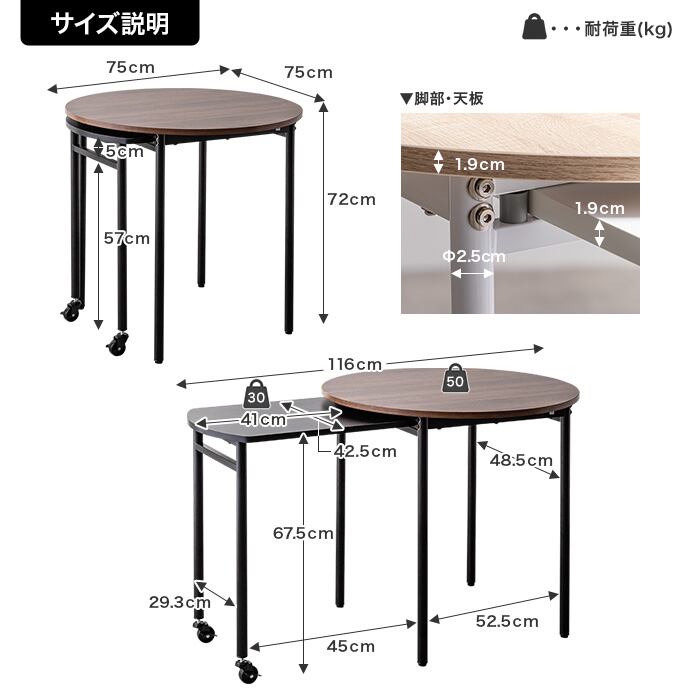 【幅75?116cm】Libre 伸縮スライド式ダイニングテーブル丸型