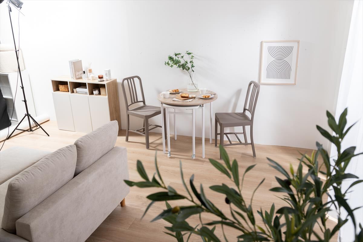 使う時だけ天板を広げられる『Libre(リーブル)』シリーズの伸縮スライド式ダイニングテーブル丸型