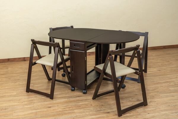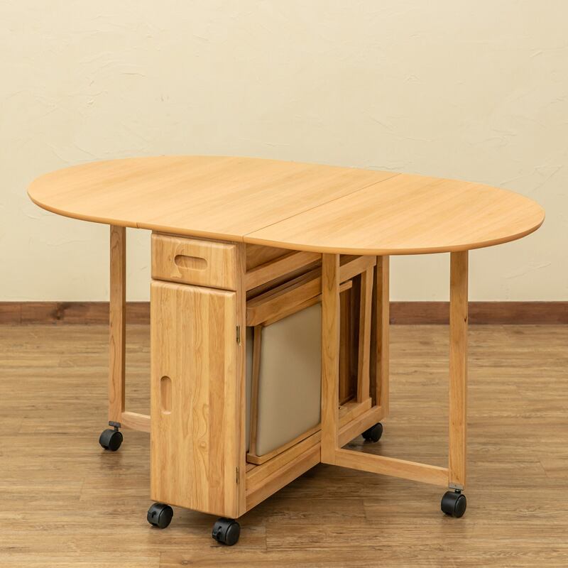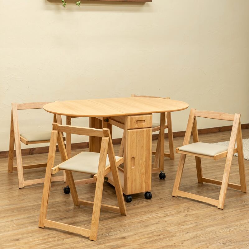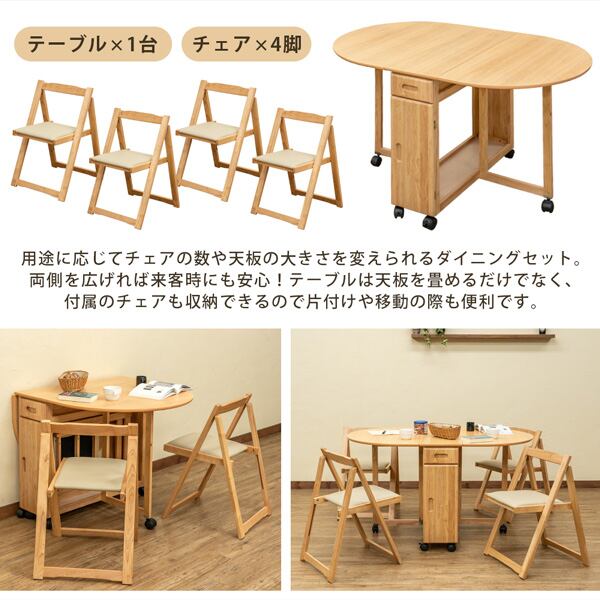 折りたためる天板のテーブルとチェア4脚のセットです