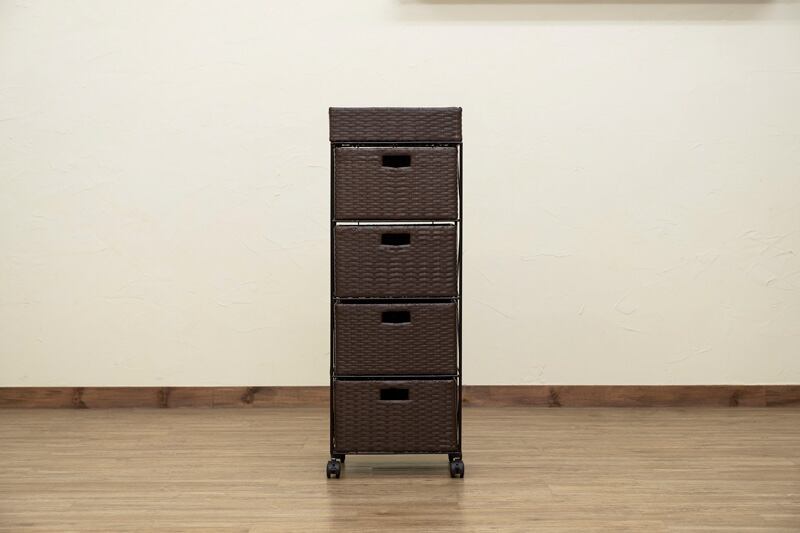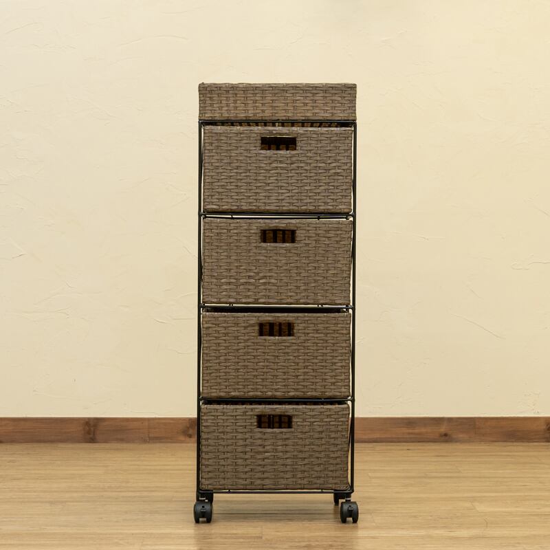 ラタン調 チェスト 4段 BR/IV/CM/GY