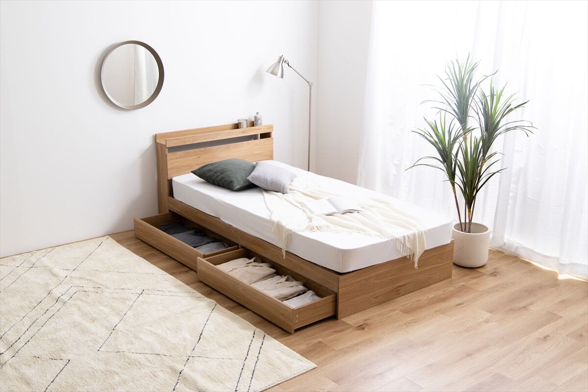 【シングル】Pluto 収納付きベッド(マットレス付き)