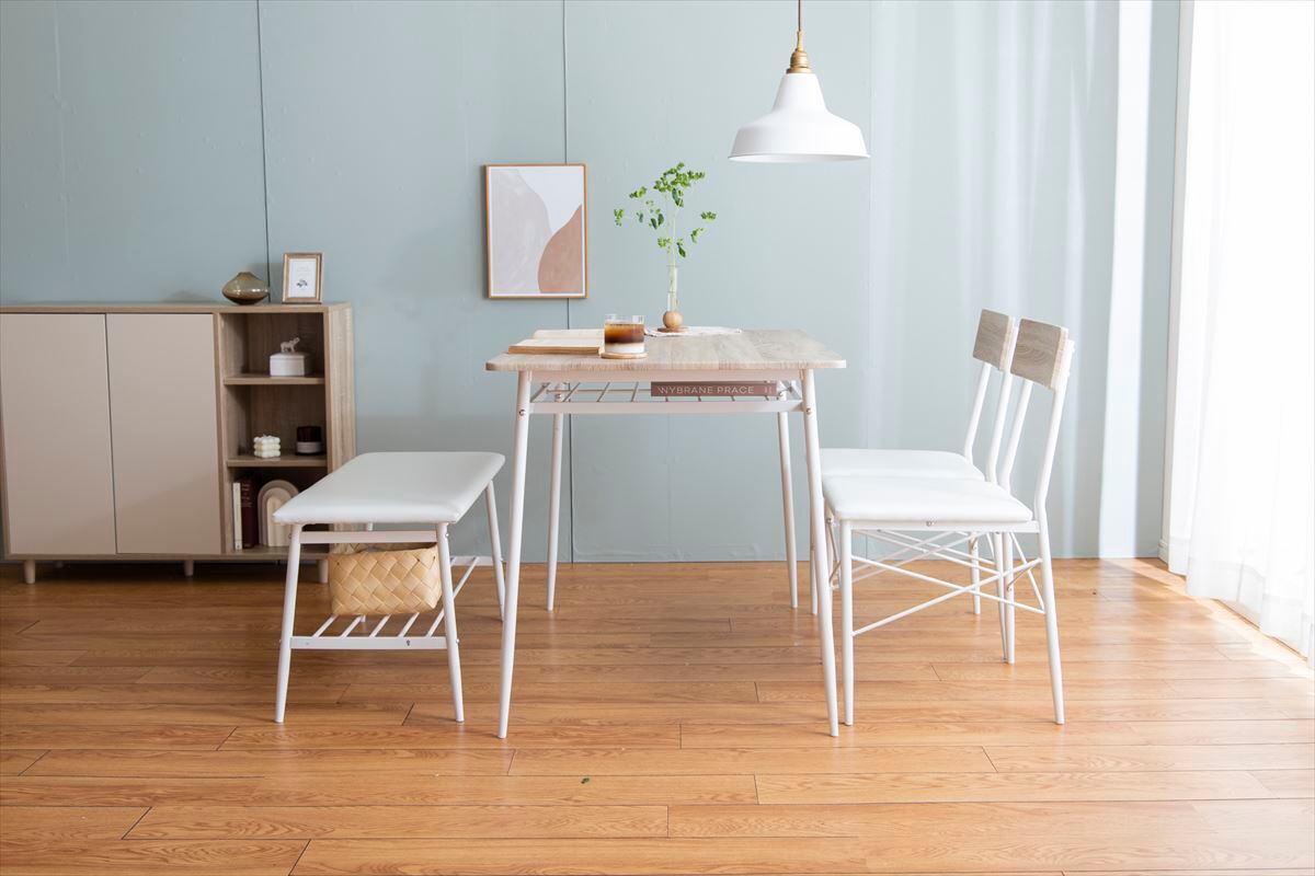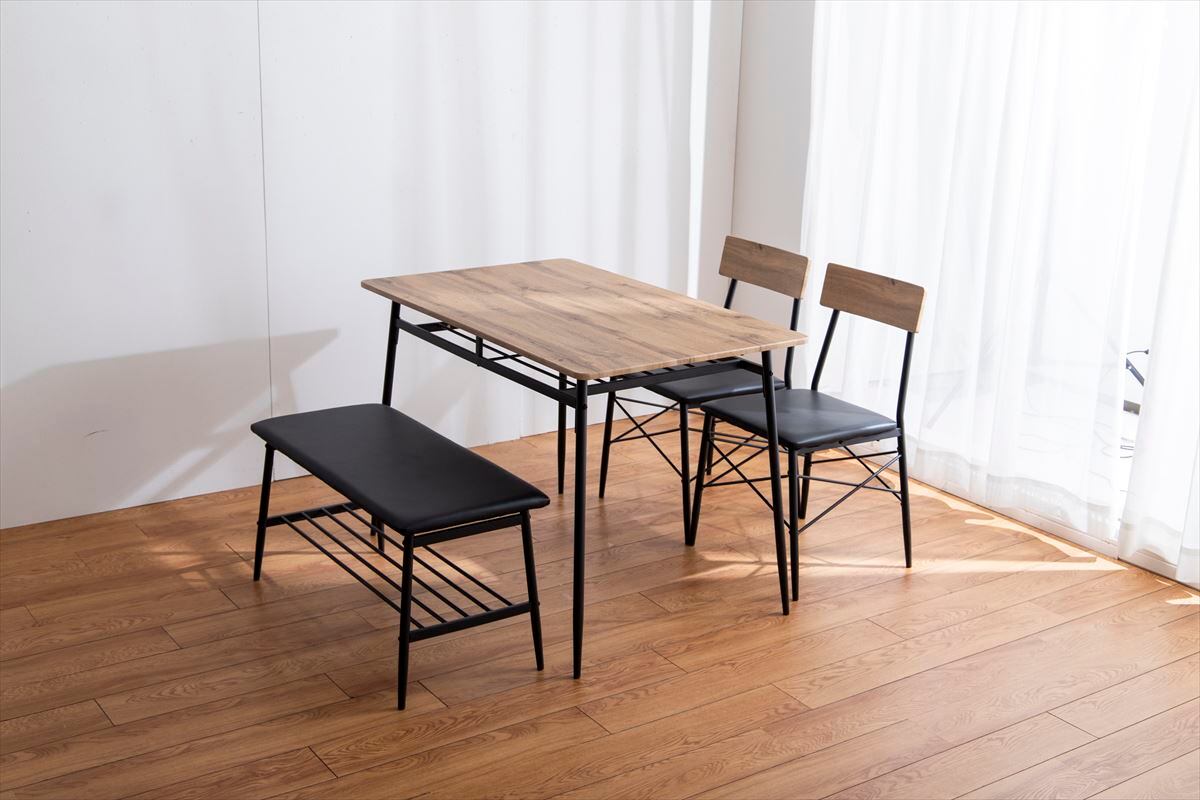 【4点セット】Roly 幅110cm ダイニングテーブル+ダイニングベンチ+チェア2脚