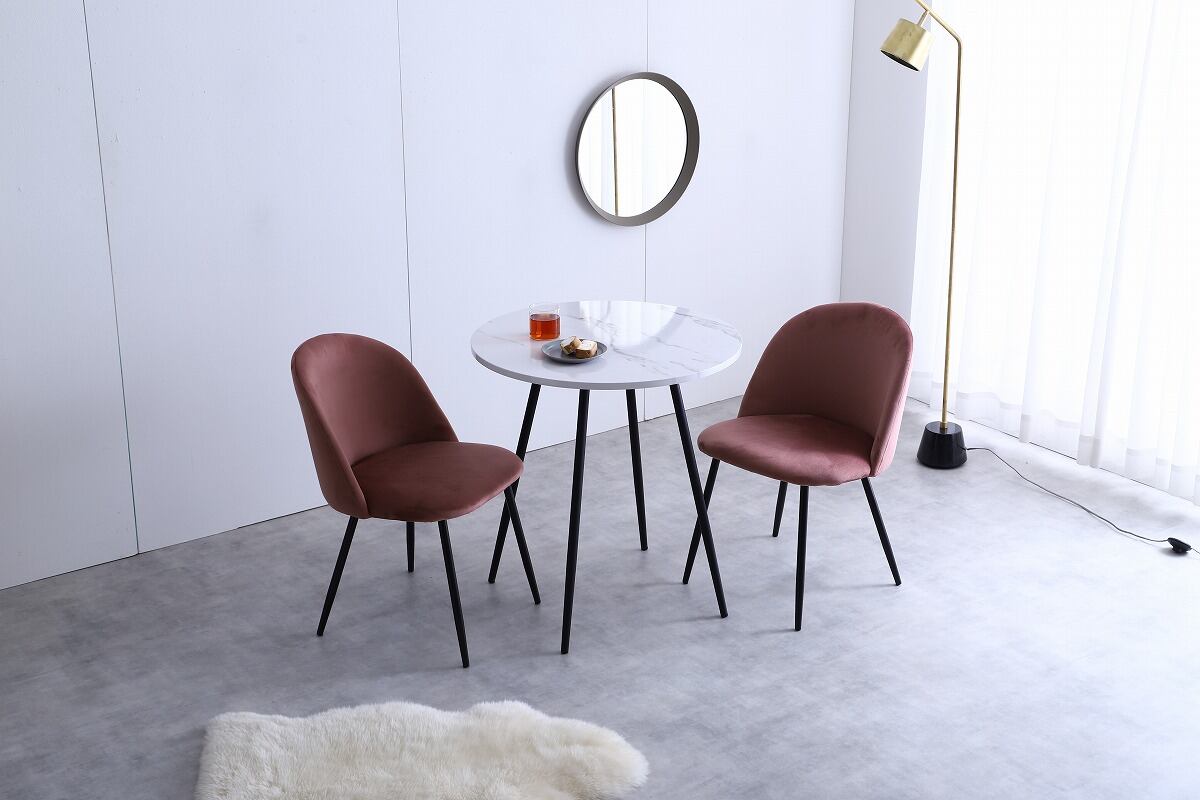 【3点セット】Mia 幅70cm大理石柄ダイニングテーブル+ベロアダイニングチェア2脚