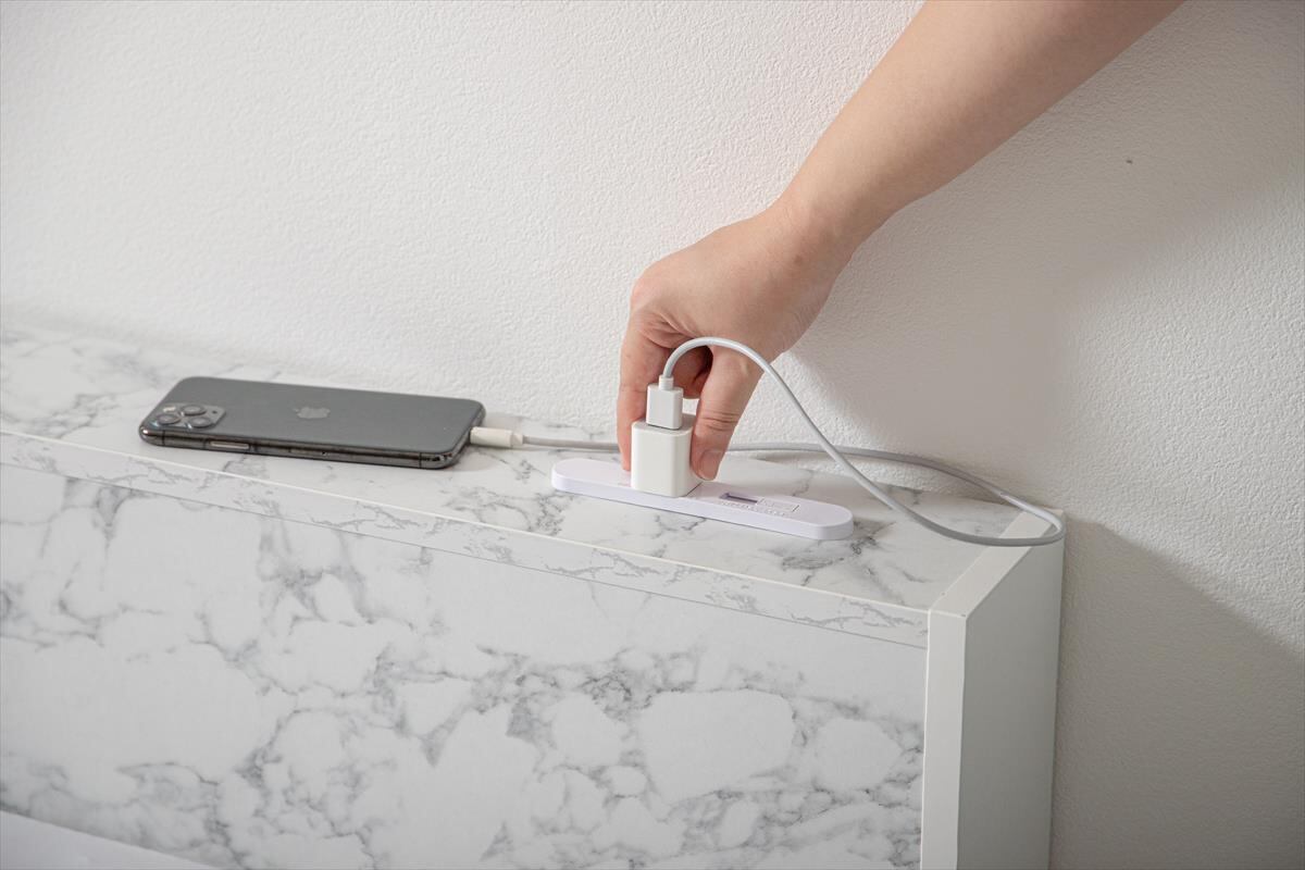 ストーン柄が高級感漂う『Raffine(ラフィネ)』宮棚&コンセント付き引き出し収納ベッド