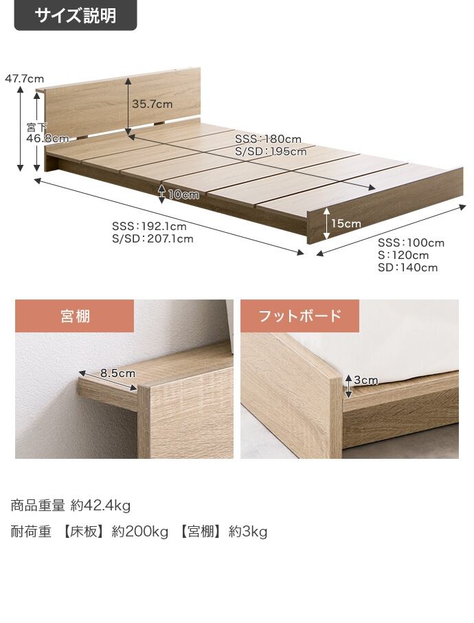 【フレーム】幅100cm×奥行192.1cm×高さ47.7cm