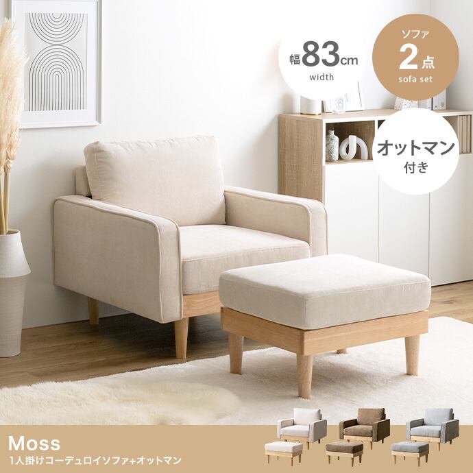 【2点セット】Moss 1人掛けコーデュロイソファ1脚+オットマン1脚