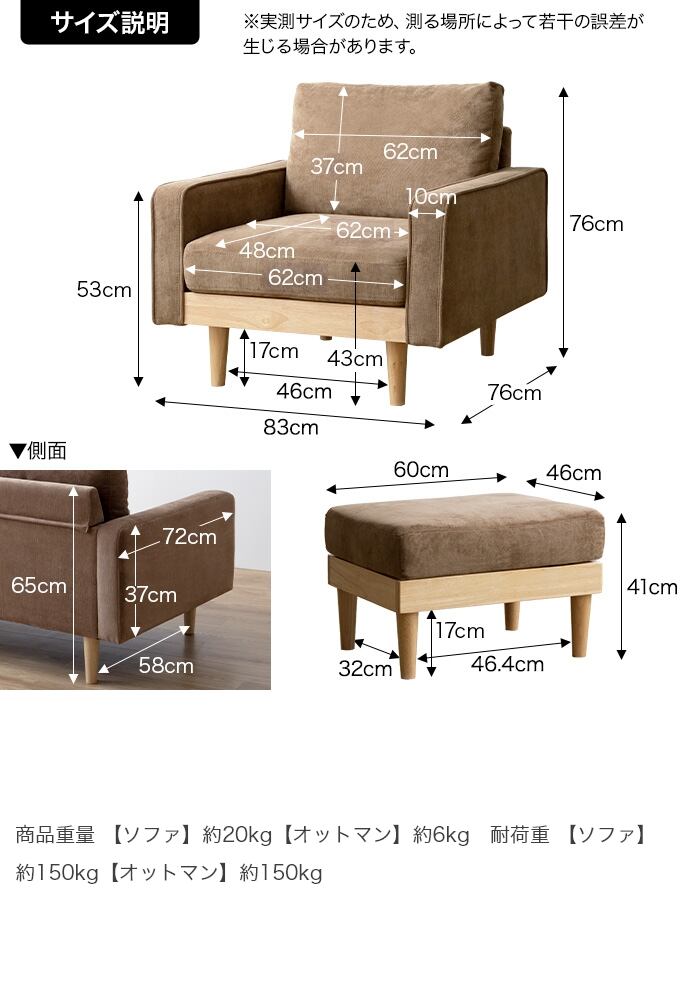 【商品重量】ソファ:約20kg、オットマン:約6kg
