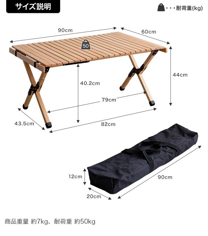 テーブル:天然木(ビーチ材)、収納バッグ:ポリエステル