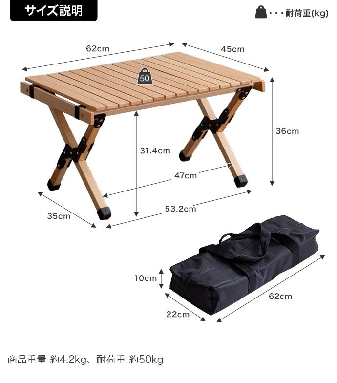 テーブル:天然木(ビーチ材)、収納バッグ:ポリエステル