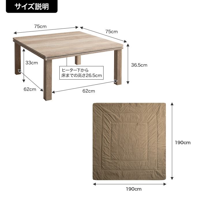 【正方形:天板 75cm×75cm】Kos こたつ&掛け布団2点セット