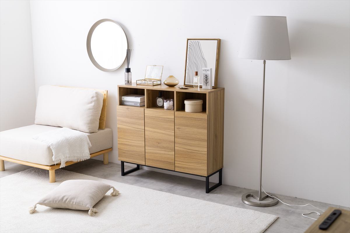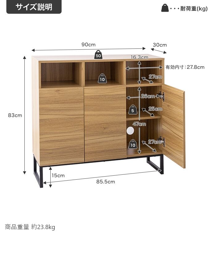 【耐荷重】天板:約50kg 、オープン収納:約10kg、可動棚:約5kg、扉収納底板:約10kg