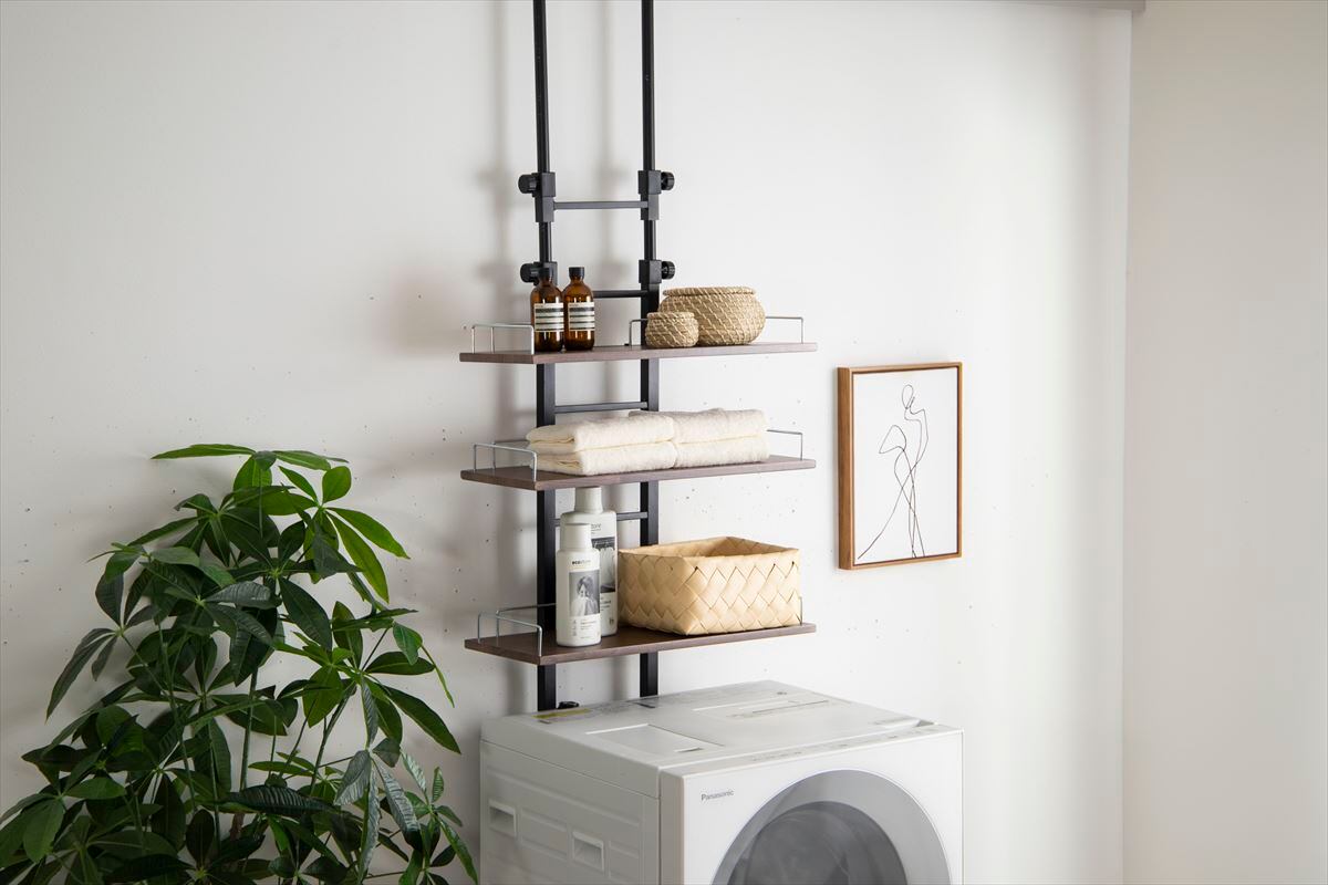壁に穴をあけることなく、簡単に壁面収納ができる『Seina(セイナ)』突っ張りランドリーラック
